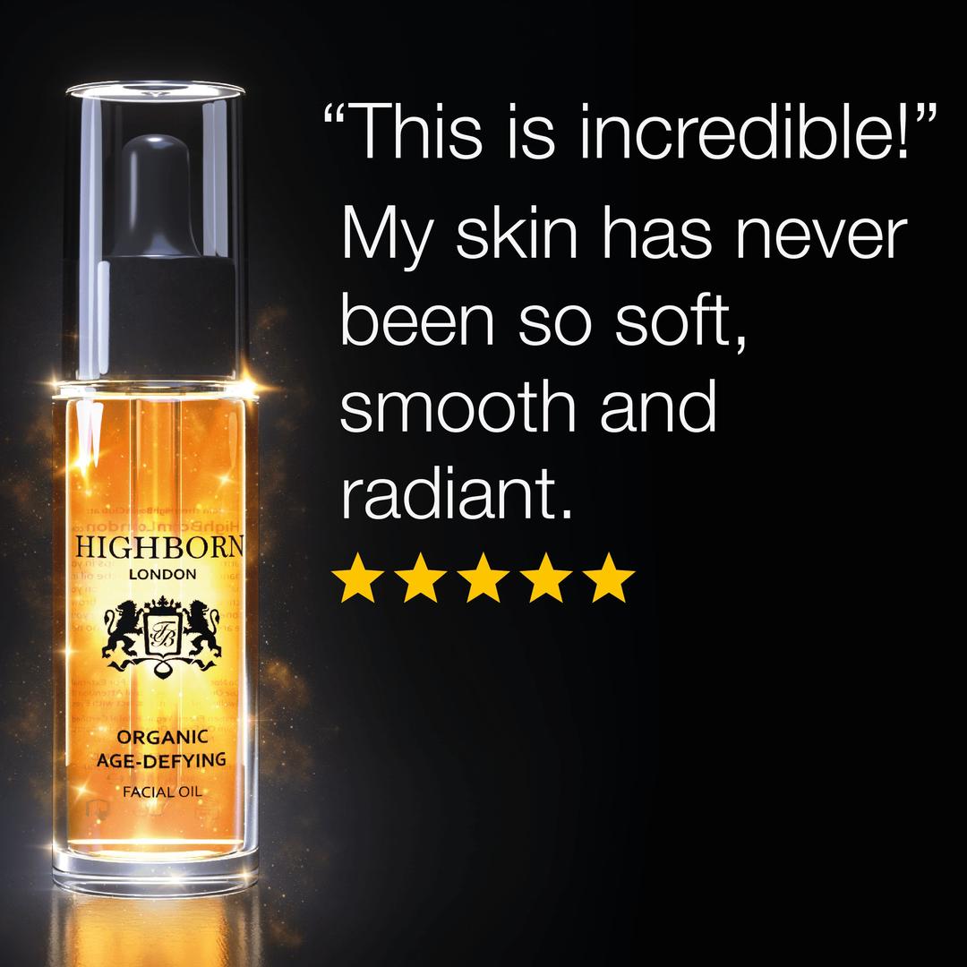 Pure organic ingredients revitalising your skin with Organic Age-Defying Facial Oil. Organic Age-Defying Facial Oil penetrates deep into your skin. Locking in its hydrating, antioxidant properties for a rejuvenated, softer and more radiant appearance.