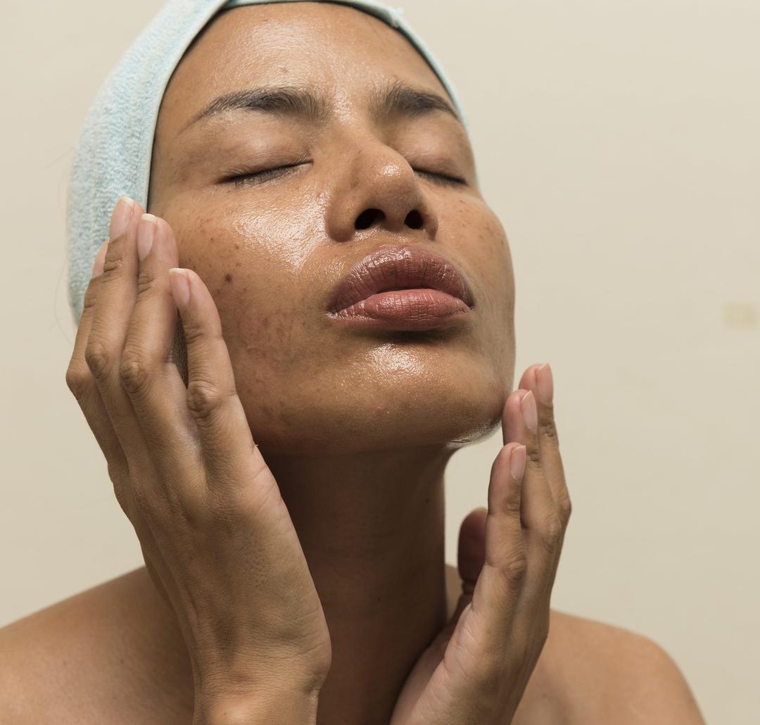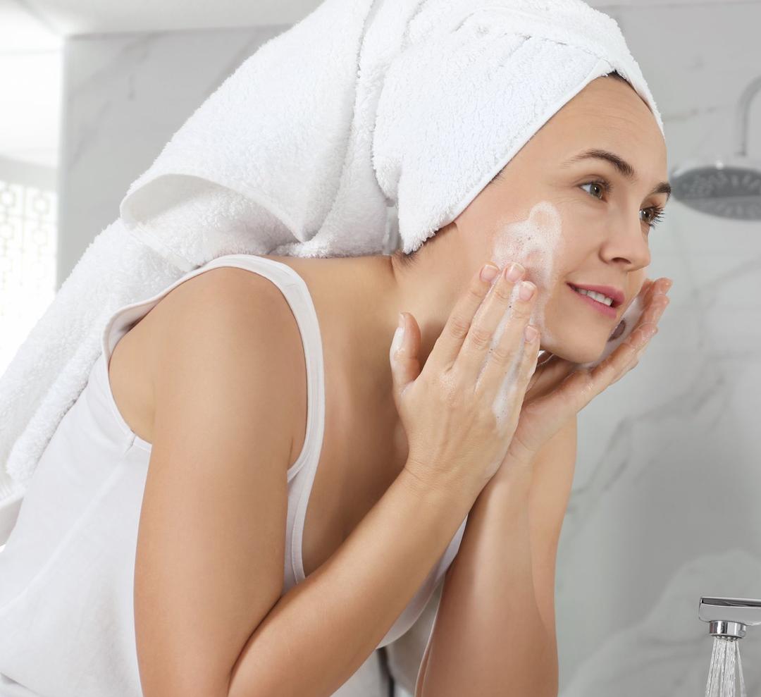 Another easy trick is to avoid using hot water when you cleanse your skin. Why? Because hot water literally melts away all the essential lipids in your natural moisturising factor.